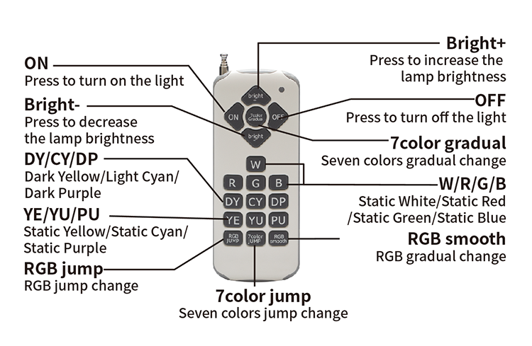 2. REMOTE CONTROL: RF wireless remote control can meet the needs of different people or different scenes like modes changing, colors changing, and ON/OFF. 1 remote can drive some lamps with same colors and functions memory.